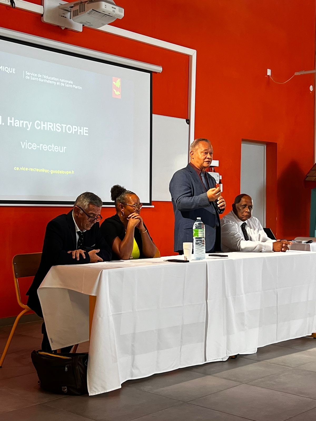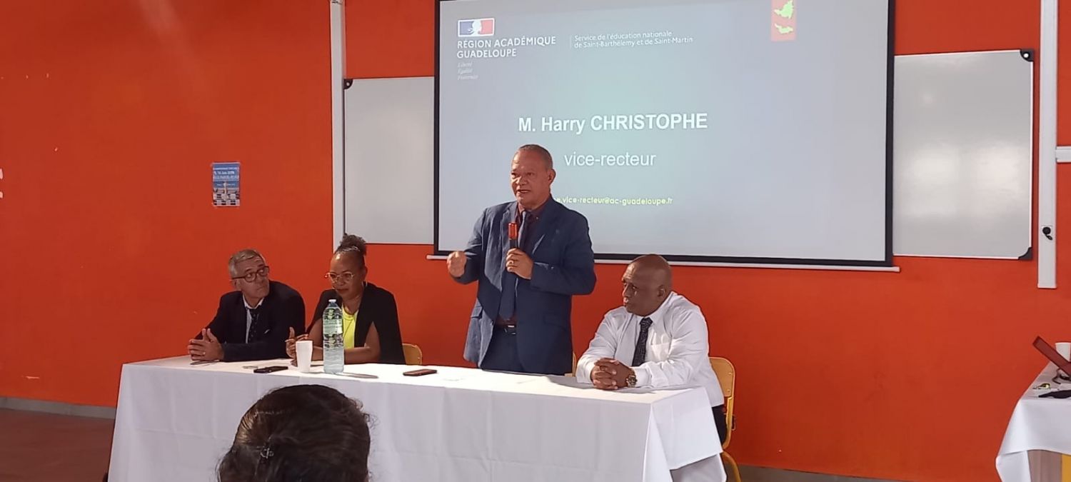 Ce 02 octobre 2024, s'est tenue la cérémonie d'accueil des nouveaux personnels, organisé par le service de l'éducation de Saint-Barthélemy et Saint-Martin au lycée professionnel Daniella Jeffry. Présidée par le chef d'établissement et plusieurs personnalités, dont le Vice-recteur et les représentants des Collectivités de Saint-Barthélemy et Saint-Martin, la rencontre a permis de présenter les structures éducatives, les spécificités des territoires et d'échanger sur l'héritage culturel des îles. La journée se prolongera par un week-end d'intégration organisé par l’Office de Tourisme, offrant une immersion dans l’histoire et la culture locales.
