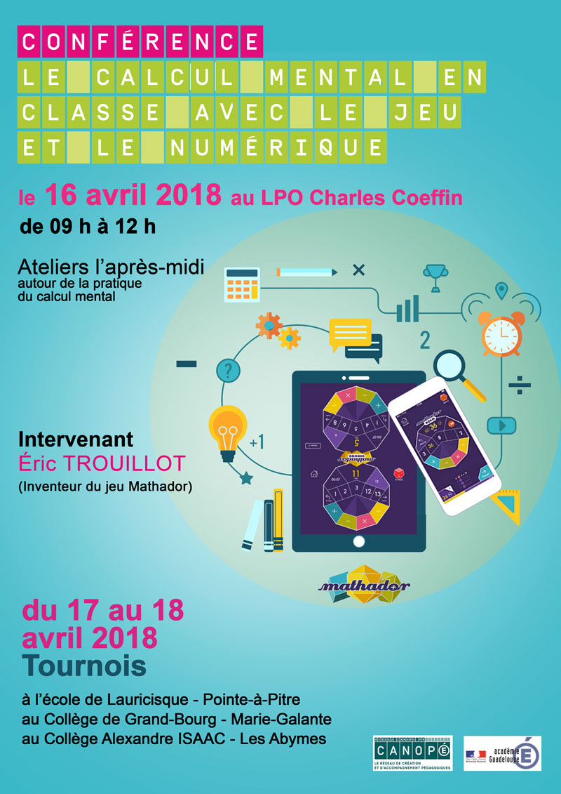mer, 04/11/2018 - 09:30 Conférence : "Calcul mental en classe avec le jeu et le numérique"